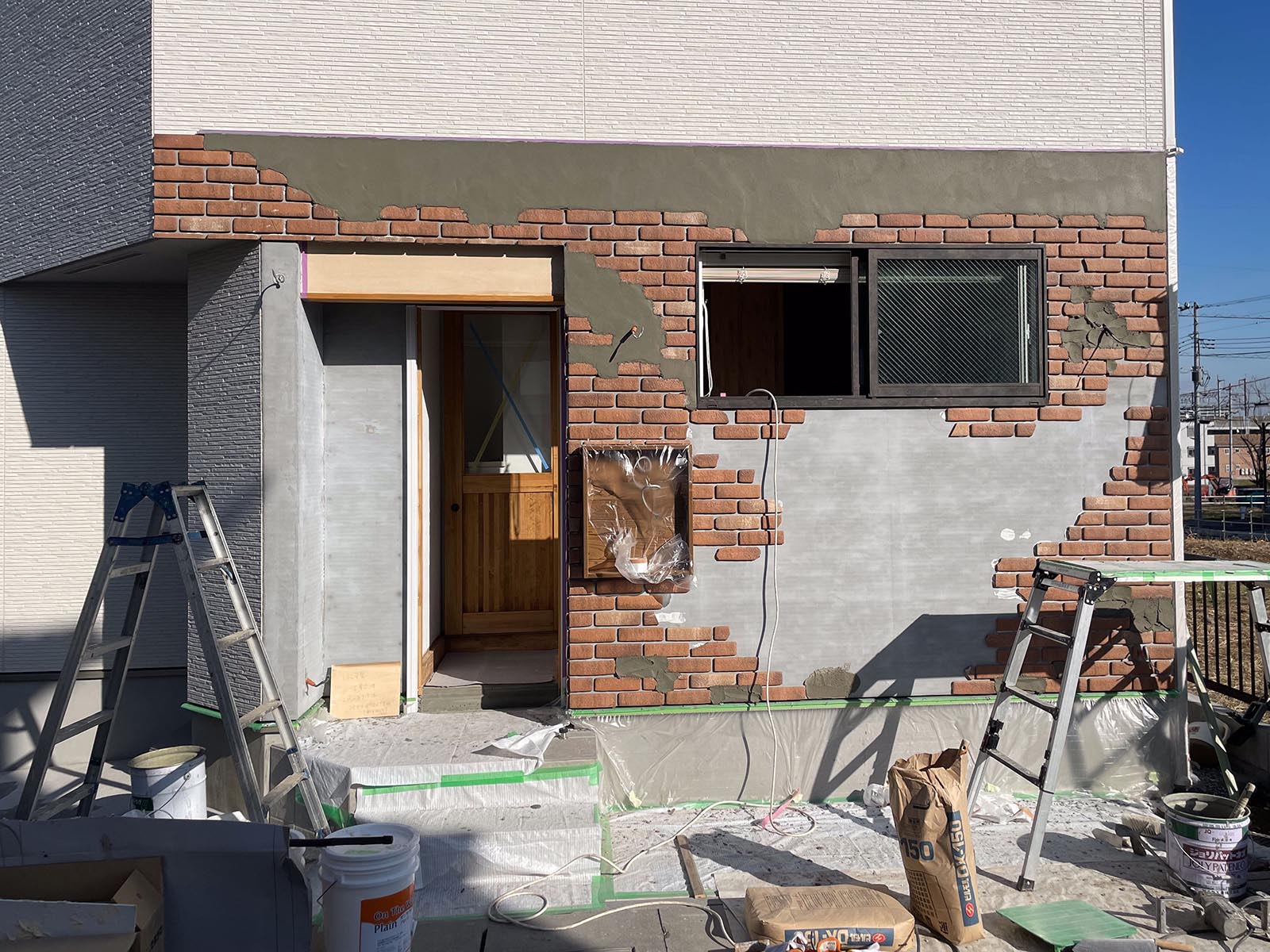 白壁とレンガによる温かみがあり、かわいくアンティークな風合いに仕上がるよう素材を厳選し、タオル仕上げで表面の質感にこだわりました。