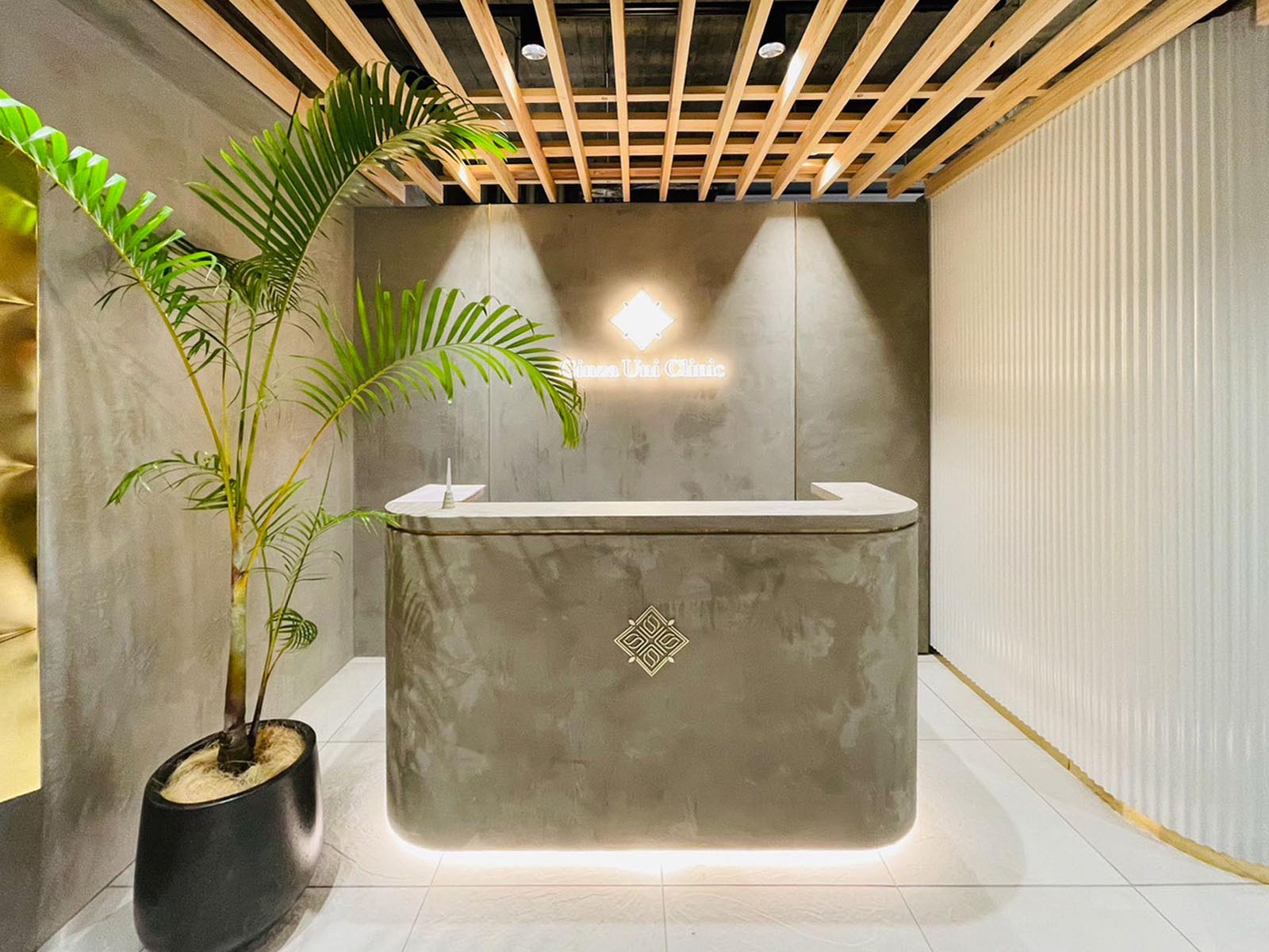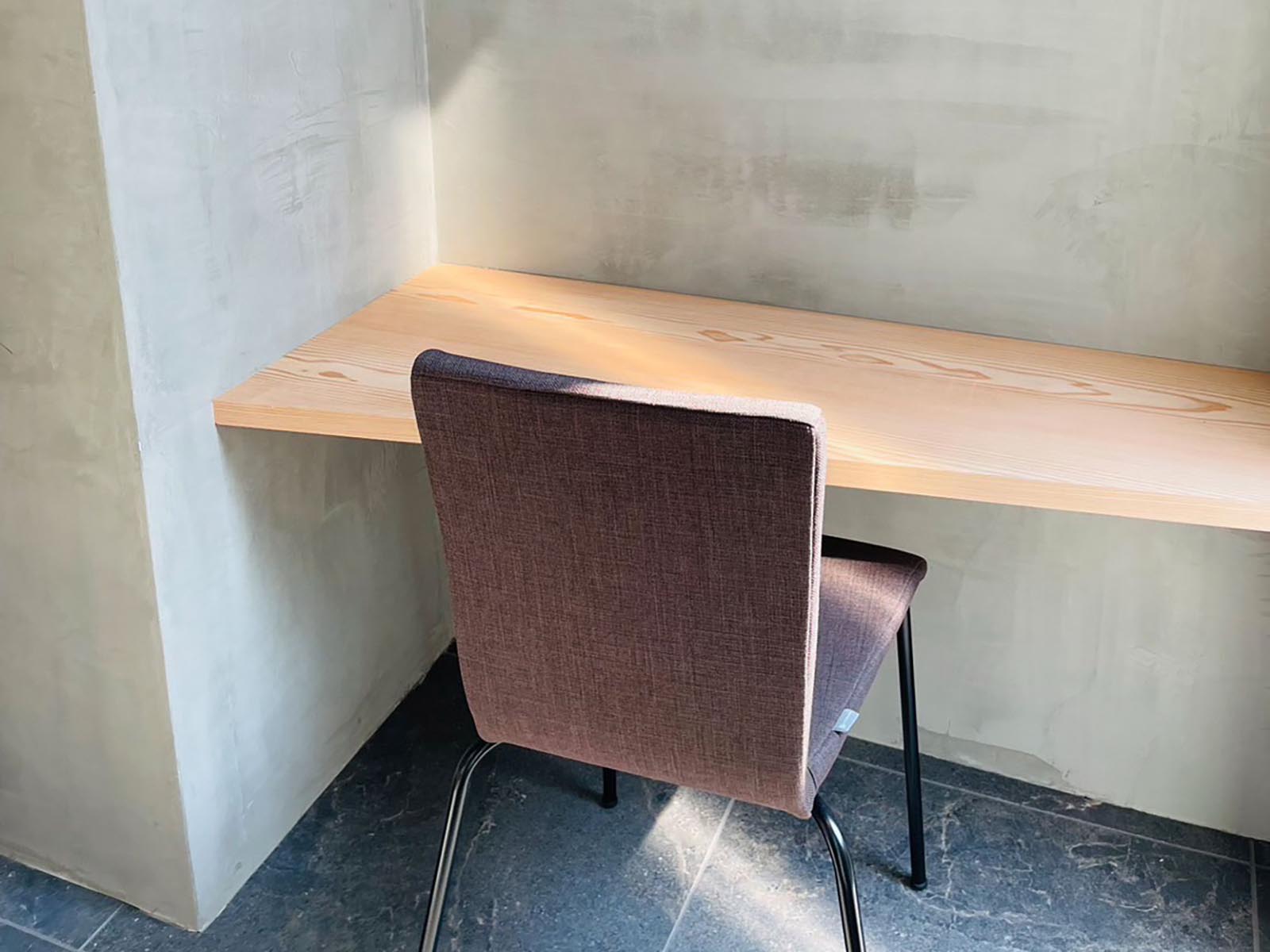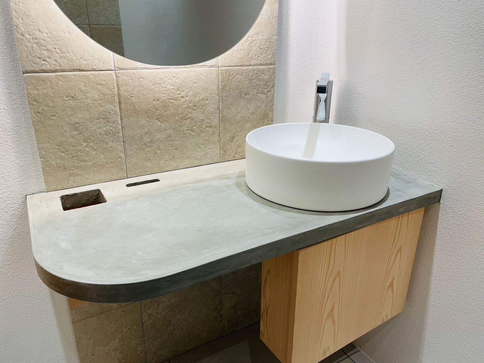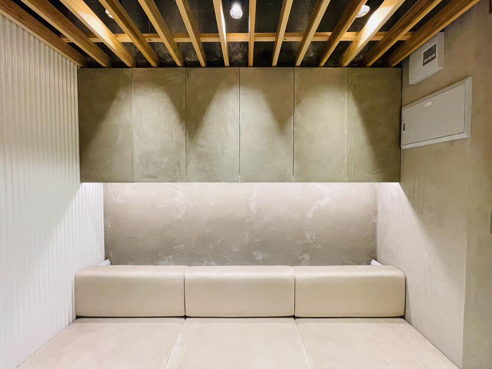 壁、受付カウンターなどをマイクロセメントで施工させていただきました。壁と什器が同材料なので、統一感のある空間を演出することができました。
