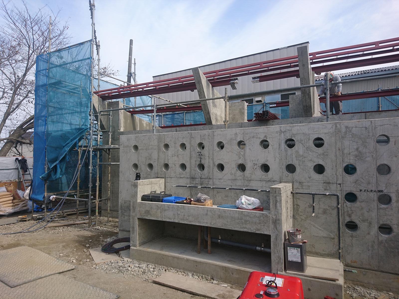枠をばらしたコンクリトートは、段差や気泡の穴があるので塗装が綺麗に塗れる下地を施工させていただきました。丸の中が大変でしたが綺麗に仕上がりました。